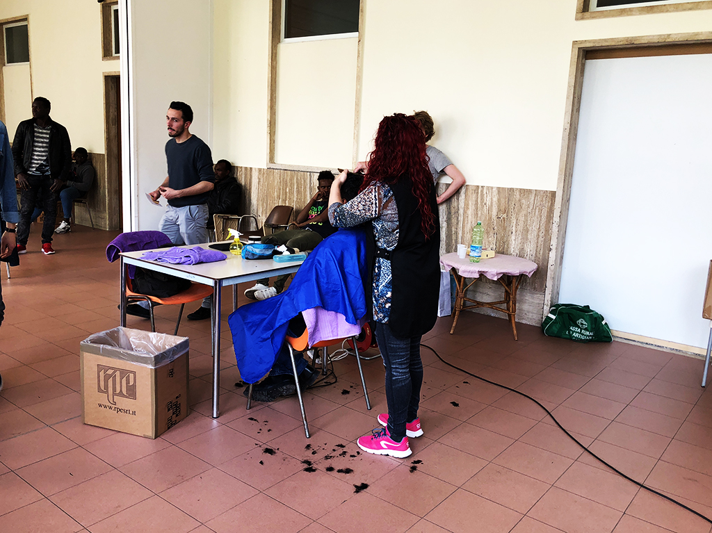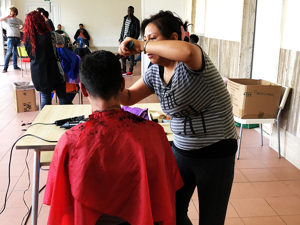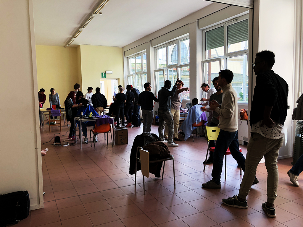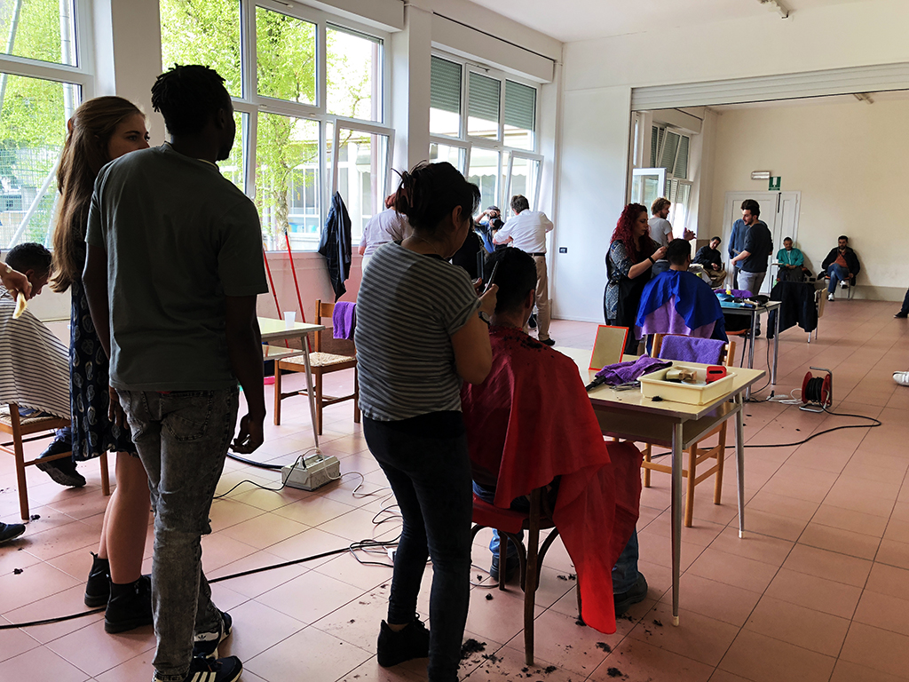 Insomma, è uno spaccato di realtà, uno sguardo forte su quella quotidianità che spesso si ritiene distante ma che in realtà affolla le strade. I parrucchieri collaborano tutti a titolo gratuito e provengono da Como o dalla provincia, come Simone, un ragazzo di 22 anni monzese che sceglie spontaneamente, per un lunedì al mese, di impegnarsi coi colleghi qui presenti. “Ho visto il progetto su Facebook e ho deciso di aderire immediatemente perchè volevo dare una mano e nel farlo mi diverto molto”.