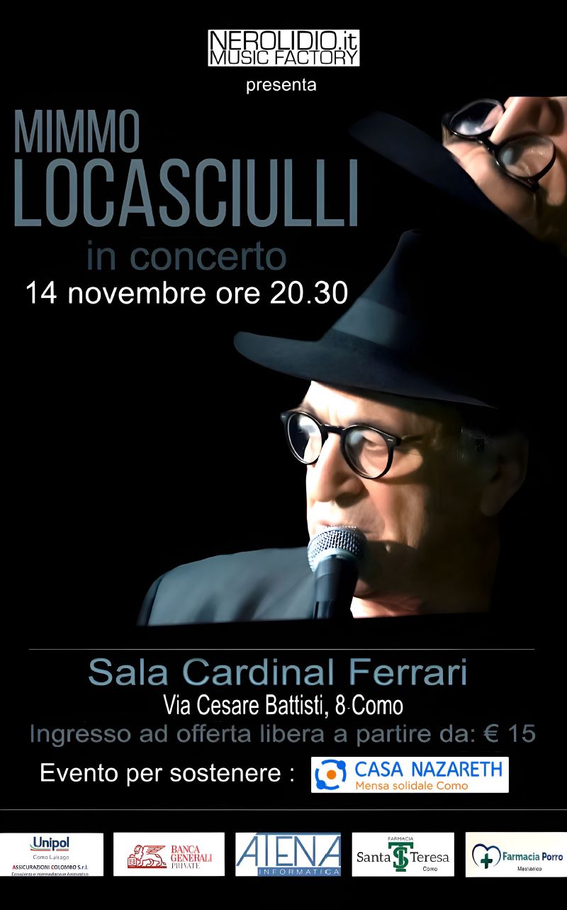 “Mimmo Locasciulli in concerto”: venerdì 14 novembre a Como evento da non perdere a sostegno della mensa di solidarietà di Casa Nazareth. Un concerto atteso e assolutamente da non perdere quello previsto a Como venerdì 14 novembre alle 20.30 al Centro Cardinal Ferrari di Como, in viale Cesare Battisti 8. Protagonista d’eccezione il cantautore Mimmo Locasciulli, premio Tenco alla carriera nel 2024 e considerato uno dei più autorevoli esponenti della canzone d’autore italiana. Introdurrà la serata l’amico Luca Ghielmetti.