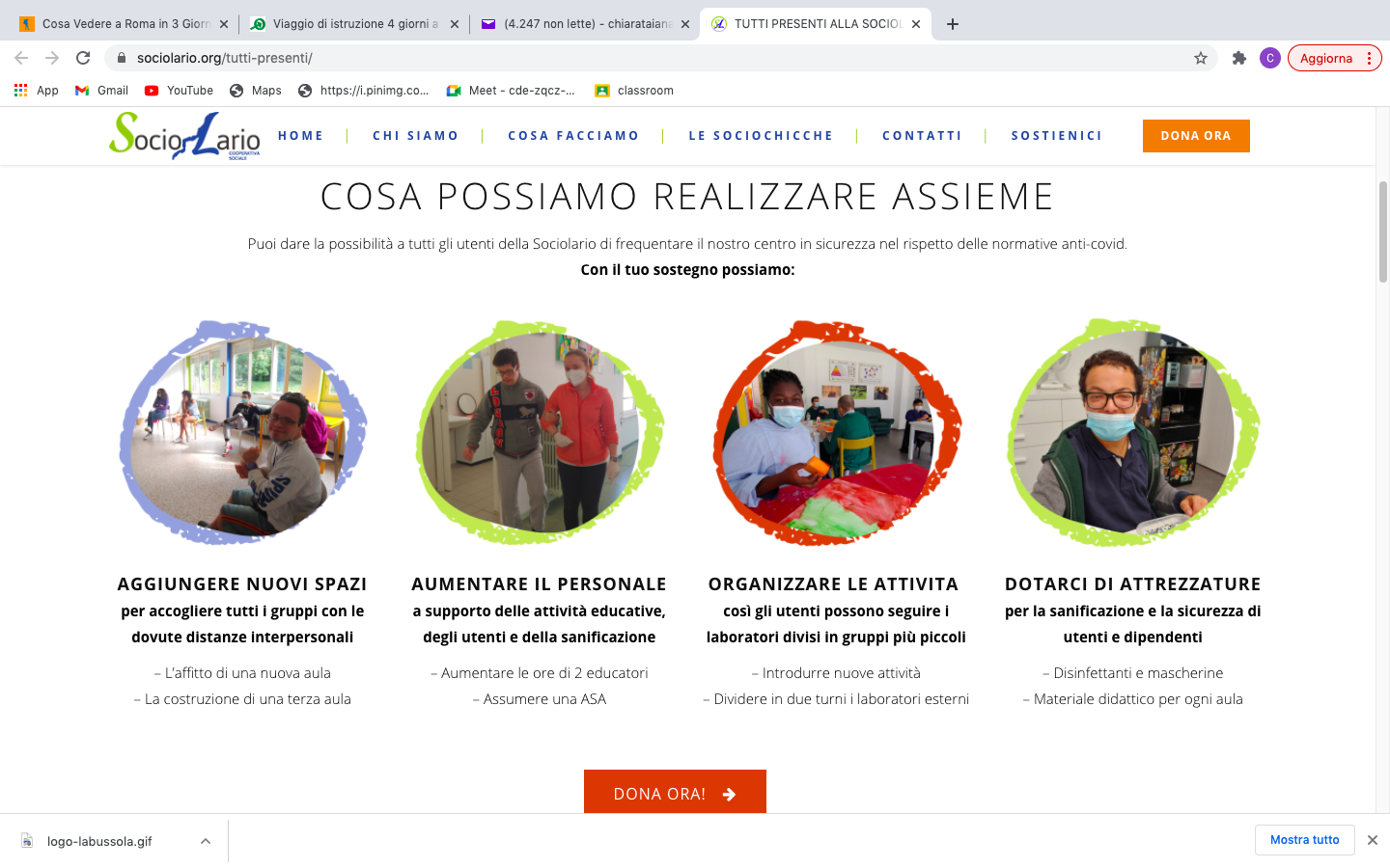 “Per poter consentire a tutti i ragazzi di tornare a frequentare il nostro centro nel pieno rispetto delle normative anti Covid abbiamo dovuto e dovremo affrontare costi notevoli – spiega il presidente Giorgio Allara – abbiamo dovuto organizzare gruppi meno numerosi e, di conseguenza, abbiamo dovuto aumentare il personale riservando anche degli operatori per le attività online con i ragazzi che, per ora, preferiscono rimanere a casa. E poi ci sono tutti i costi di sanificazione e pulizia e il progetto di dotarci di uno spazio in più in modo da permettere a tutti gli utenti di tornare a trascorrere le giornate con noi”.