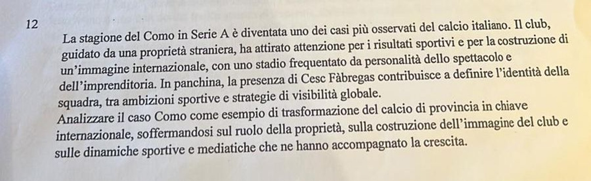 Il caso Como 1907 diventa anche materia d’esame. Parliamo della prima fase che devono affrontare i candidati a diventare giornalisti professionisti dopo il tradizionale anno e mezzo di praticantato o dopo le scuole di formazione. Ebbene, il test scritto (poi seguito da un orale nei prossimi mesi) si è svolto oggi, 21 aprile, a Roma. Non più nella storica e tradizionale sede dell’Hotel Ergife ma all’Hotel Pineta Palace&Congress Centre di via San Lino Papa.