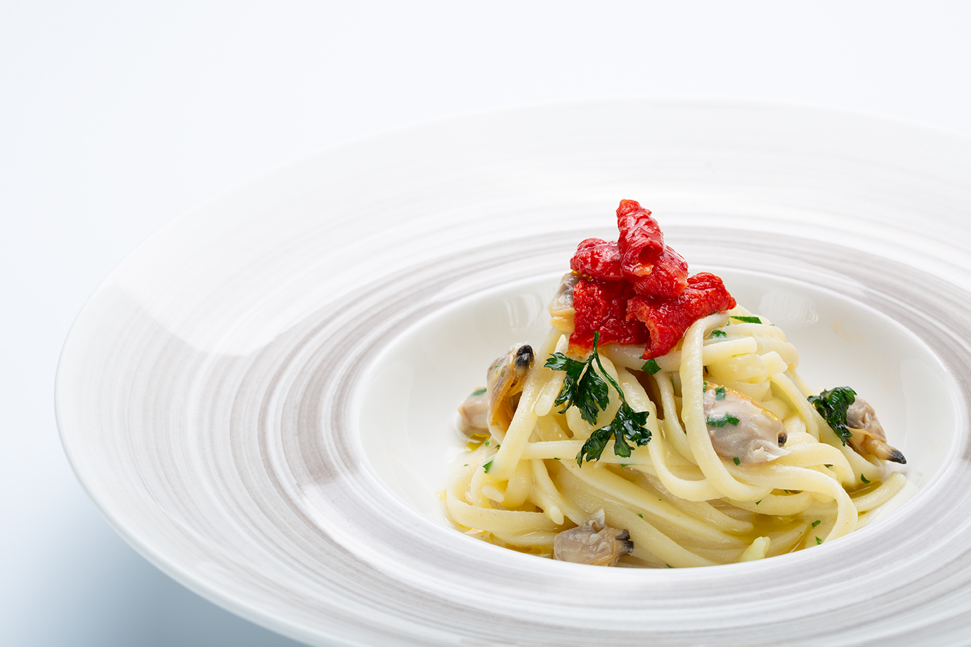 Tra i piatti simbolo, spicca uno spaghetto con le vongole che accompagna il ristorante fin dal giorno dell’apertura, il 16 settembre 2019. “È il nostro piatto iconico, non l’abbiamo mai tolto dal menù. Quando mio marito mi fa arrabbiare – ride Tiani – si fa perdonare proprio con quello”.